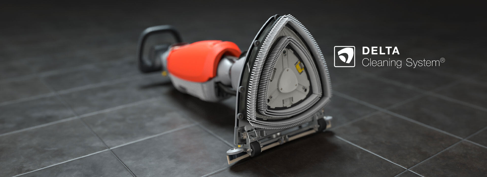 - Ultraflacher, deltaförmiger Reinigungskopf für wandnahes Reinigen sowie das Unterfahren von Barrieren