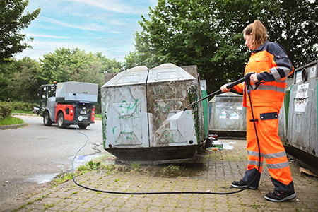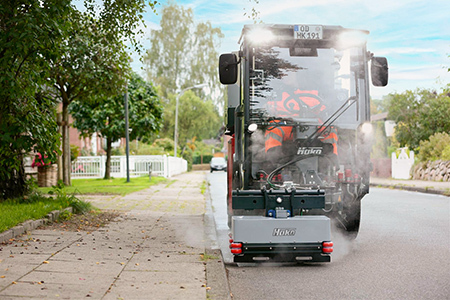 Starkes Team mit Wasserstrahltechnik: Ausgestattet mit dem Wasserstrahlsystem Weco M900 City ist der Citymaster 1650 die ideale Lösung dafür, eine Vielzahl an Aufgaben auf Straßen und Plätzen sowie dank nur 3,5 t Gesamtgewicht auch auf Gehwegen zu erledigen. Und das zeit-, material- und kostensparend: Denn per Knopfdruck kann zwischen den drei Grundfunktionen Hochdruckreinigen, Wildkrautentfernen und Bewässern gewechselt werden – und das im selben Einsatz! Und danach lässt sich der Citymaster 1650 zum Beispiel mit wenigen Handgriffen für den Kehreinsatz umrüsten.
