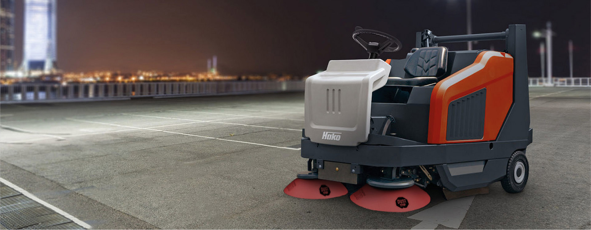 They provide economically efficient, high-performance industrial cleaning: the ride-on machines from Hako’s Sweepmaster product line. The spectrum ranges from particularly compact and manoeuvrable machines to universal models providing a cleaning performance of up to over 16,000 m²/h. We have the right solution for every requirement: Whether the task on hand is to clean warehouses and production halls or paved outdoor areas: Our Sweepmaster models meet the highest demands in terms of cost-effective application.