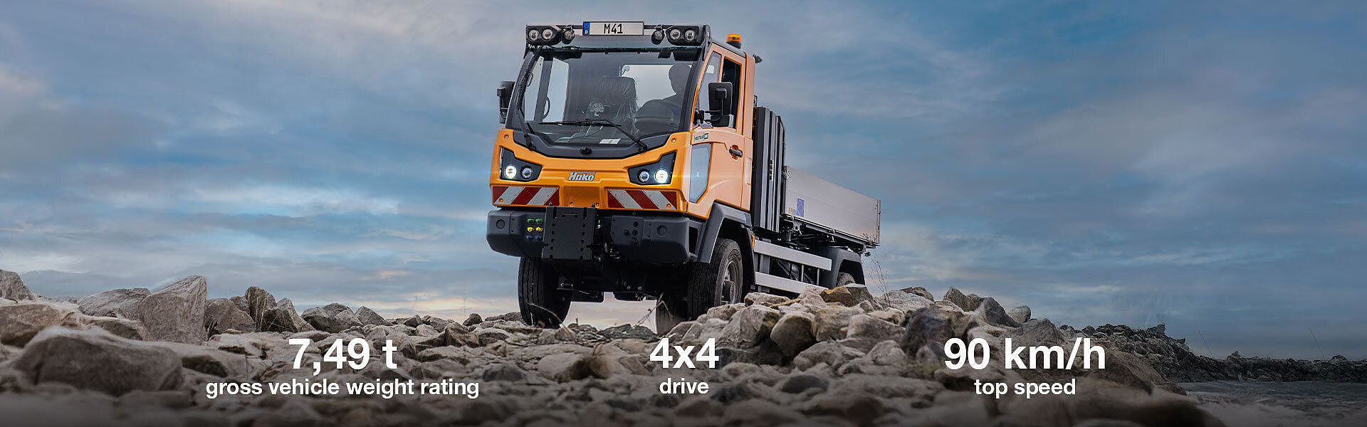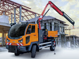 The permanent all-wheel drive and standard differential locks increase traction and manoeuvrability even in demanding terrain. The climbing ability at full operating weight is approx. 45%, and despite the heavy vehicle class, it is even 100% at empty weight. The standard hill hold function keeps the vehicle in position when stopping on a slope until the electric parking brake is automatically applied. This means no rolling back and easy starting at any time.